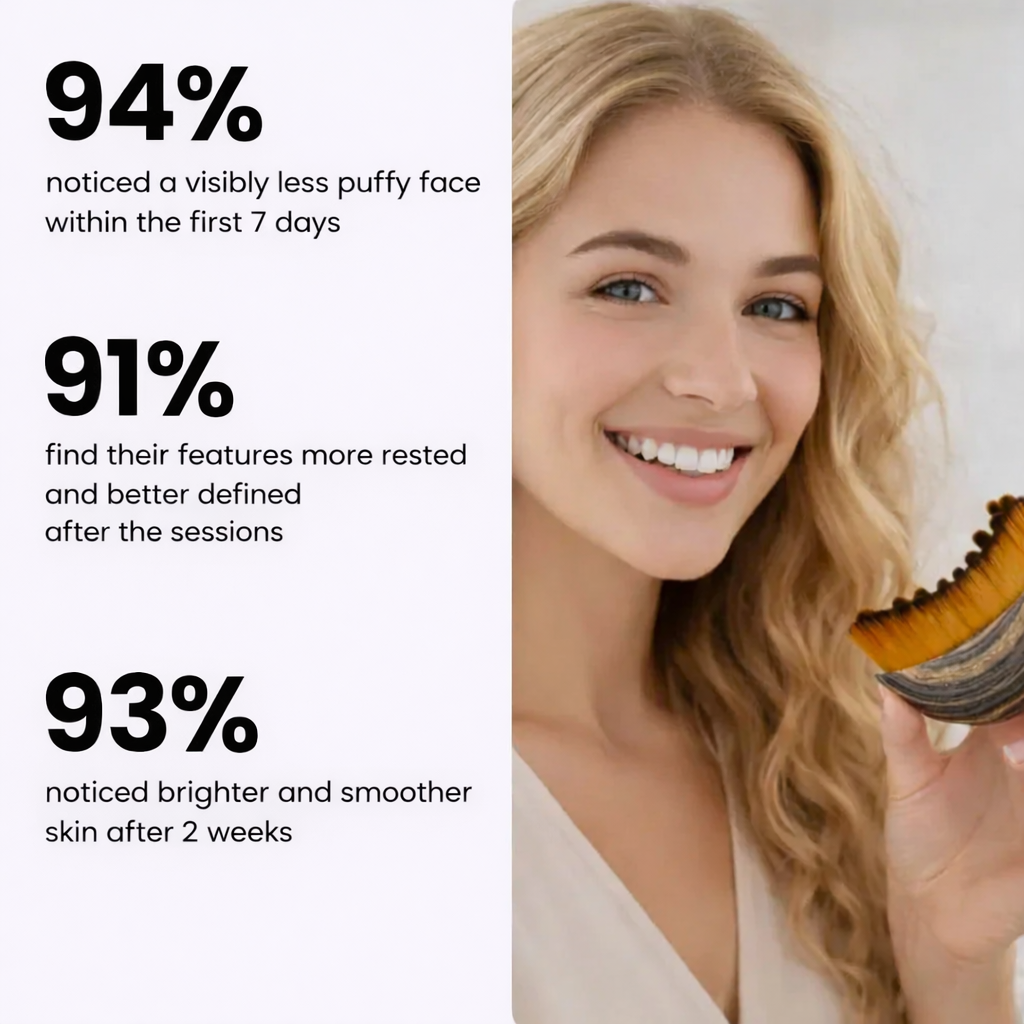Each gentle upward stroke activates sluggish lymphatic vessels, guides trapped fluid away from facial tissues, and boosts circulation to restore your face's natural drainage.